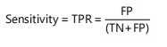The classification performance was evaluated by computing the confusion matrix elements: True Positive (TP), False Positive (FP), True Negative (TN) and False Negative (FN). These were used to determine the True Positive Rate (TPR) and False Positive Rate (FPR) as given by the following equations: