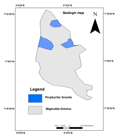 Geologically, the area lies within the Precambrian Basement Complex of Southwestern Nigeria14. The mapped lithological units predominantly comprise porphyritic granite and migmatite gneiss, with the latter occupying over 80% of the subsurface, thereby constituting the dominant rock formation across the study region Fig. 4.
