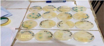 Figure 1 shows the culture plate of test organism with the produced soap solution. All the culture plate was label for easy identification of growth against the soap solution.